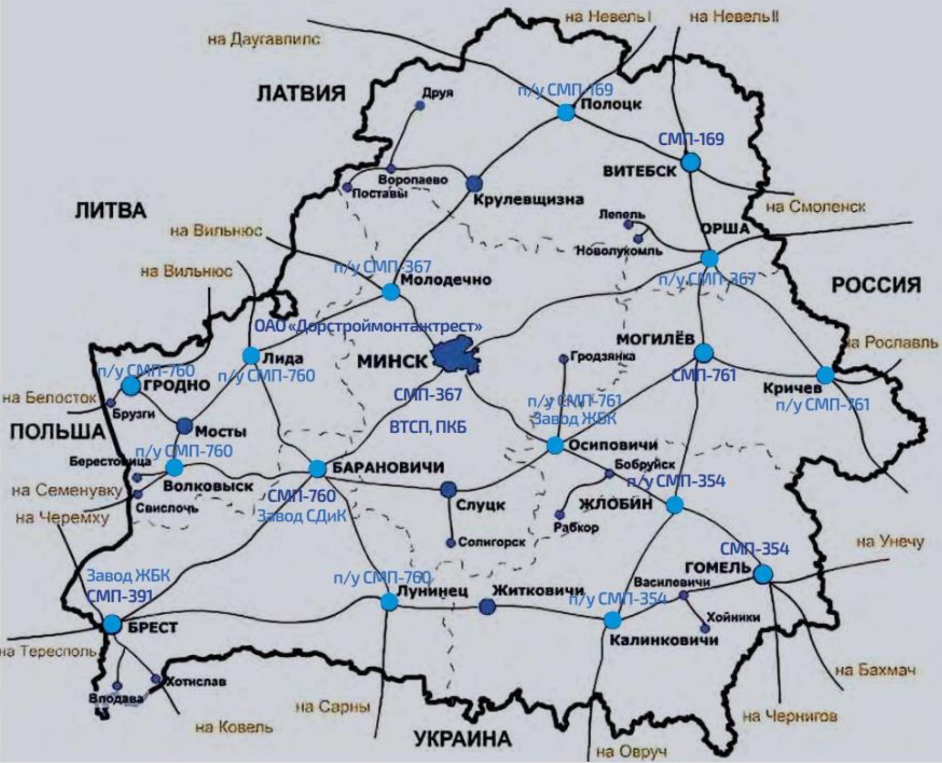 В структуру предприятия входит 11 филиалов, расположенных на территории всей Республики Беларусь.